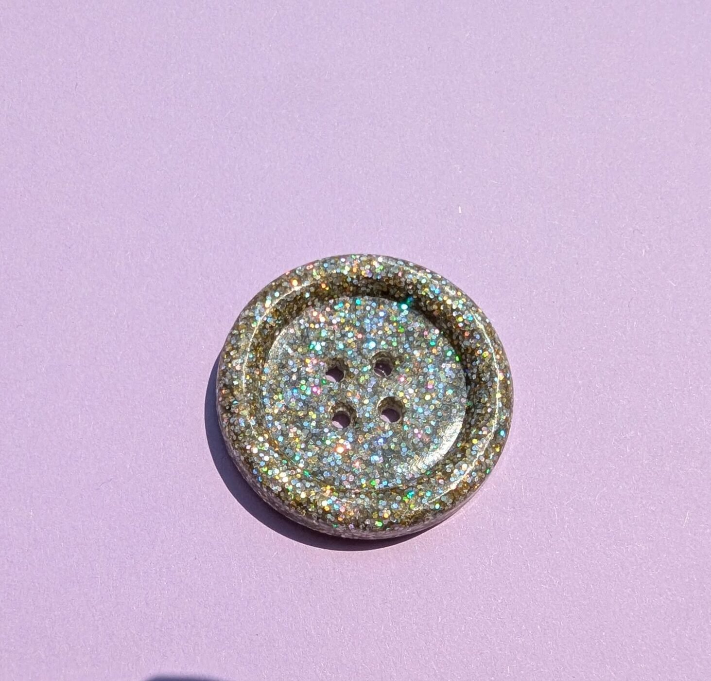 Der Knopf „Gabrielle“ in Gold/Silber holographischen Glitzer ist die ideale Wahl für kreative Nähprojekte. Er ist ein echter Blickfang, der Deine Designs zum Strahlen bringt.