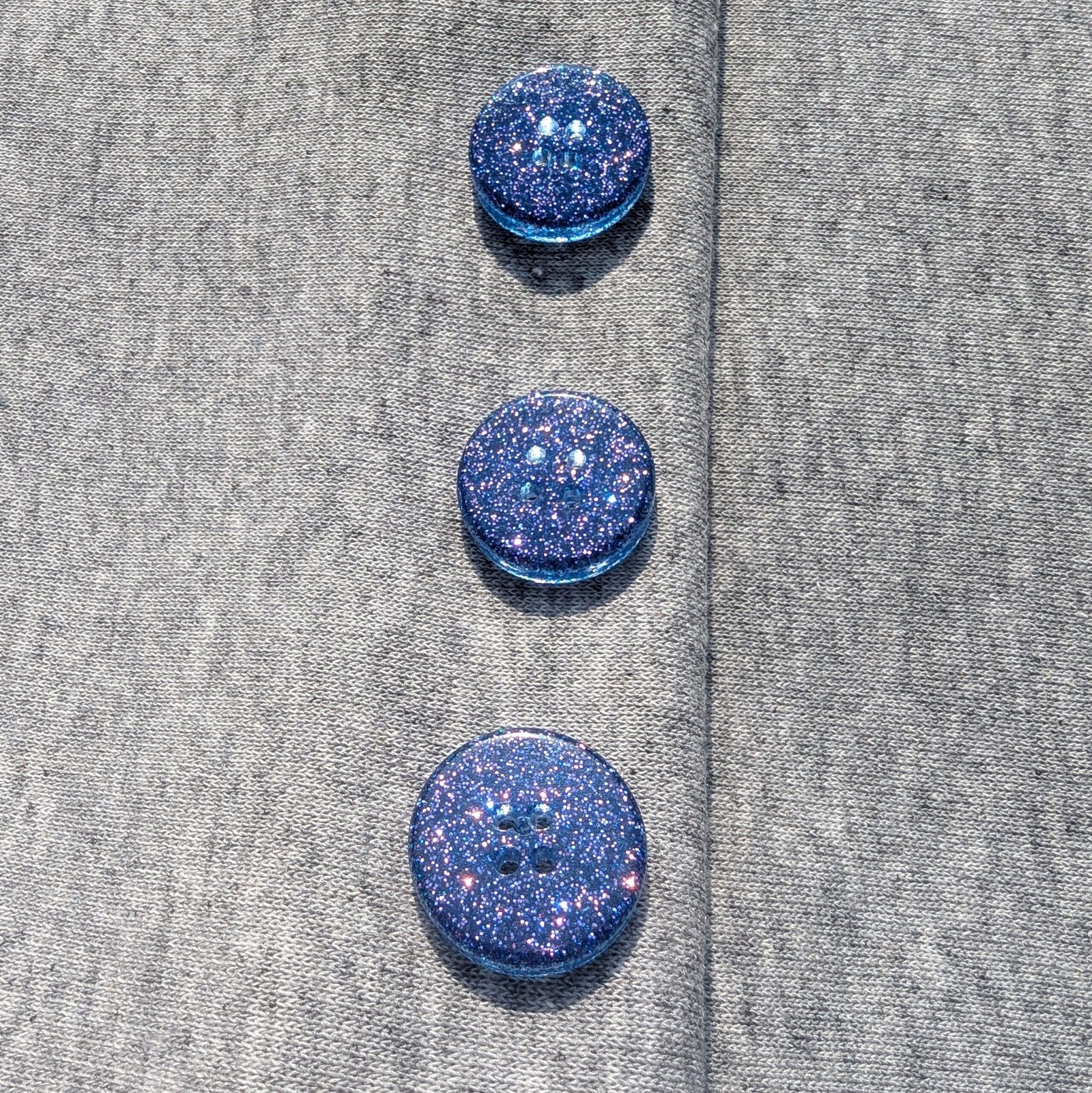 Da die Knöpfe auf Epoxidharzbasis hergestellt werden, ist es unmöglich, identische Knöpfe herzustellen. In der Mischung können manchmal Luftblasen entstehen, die jedoch keinen Einfluss auf die Qualität des Produkts haben.