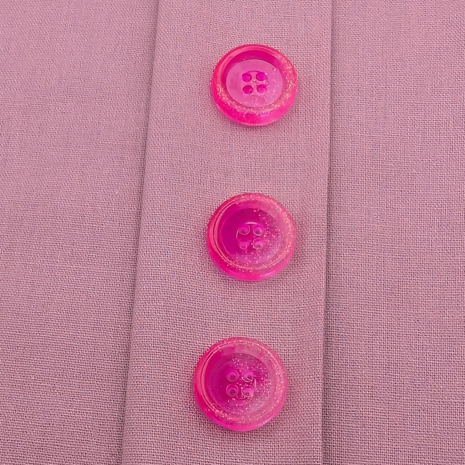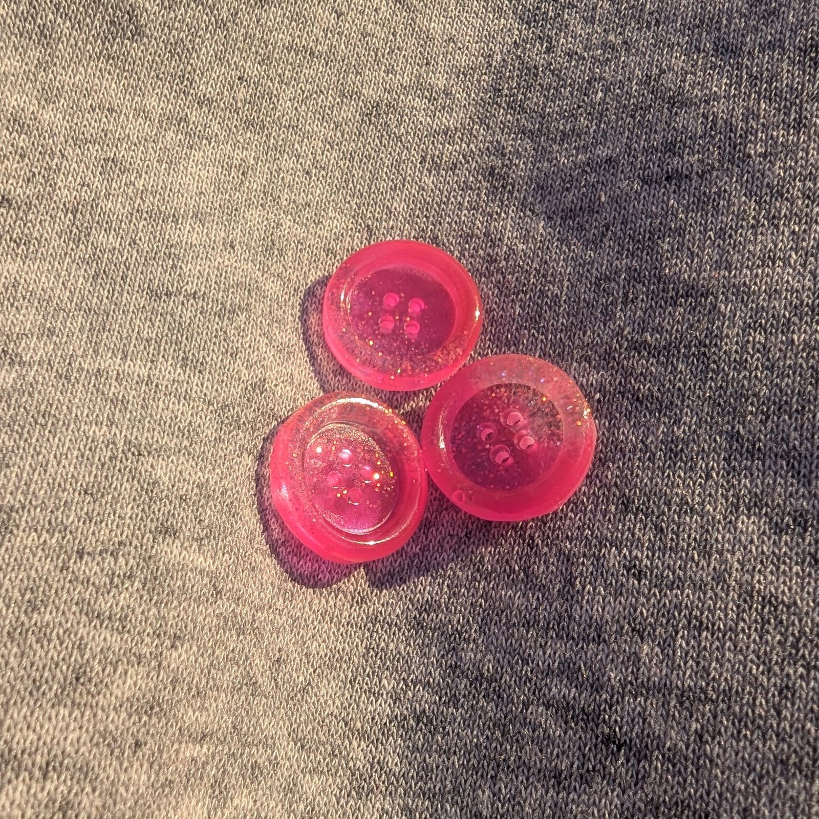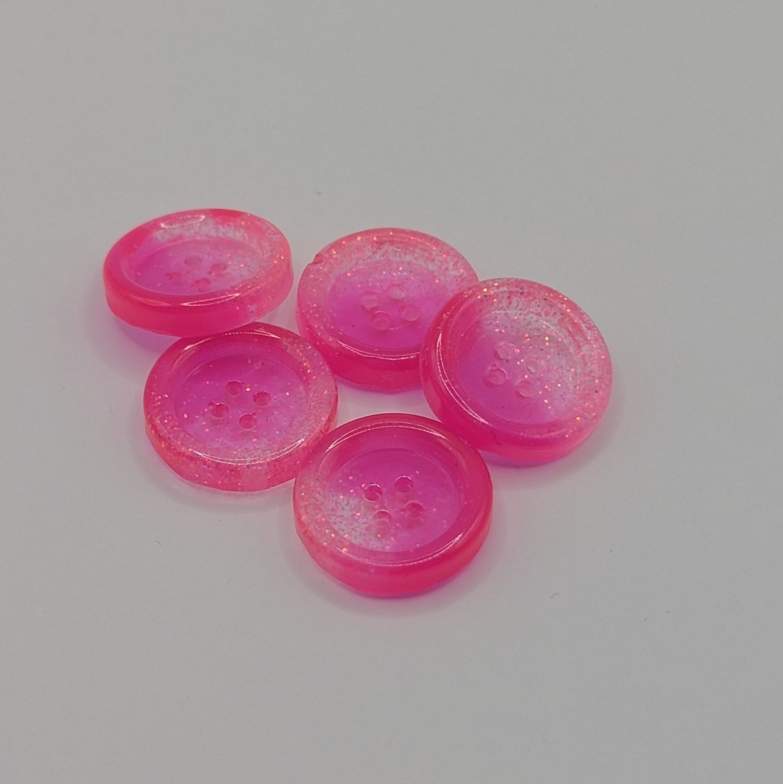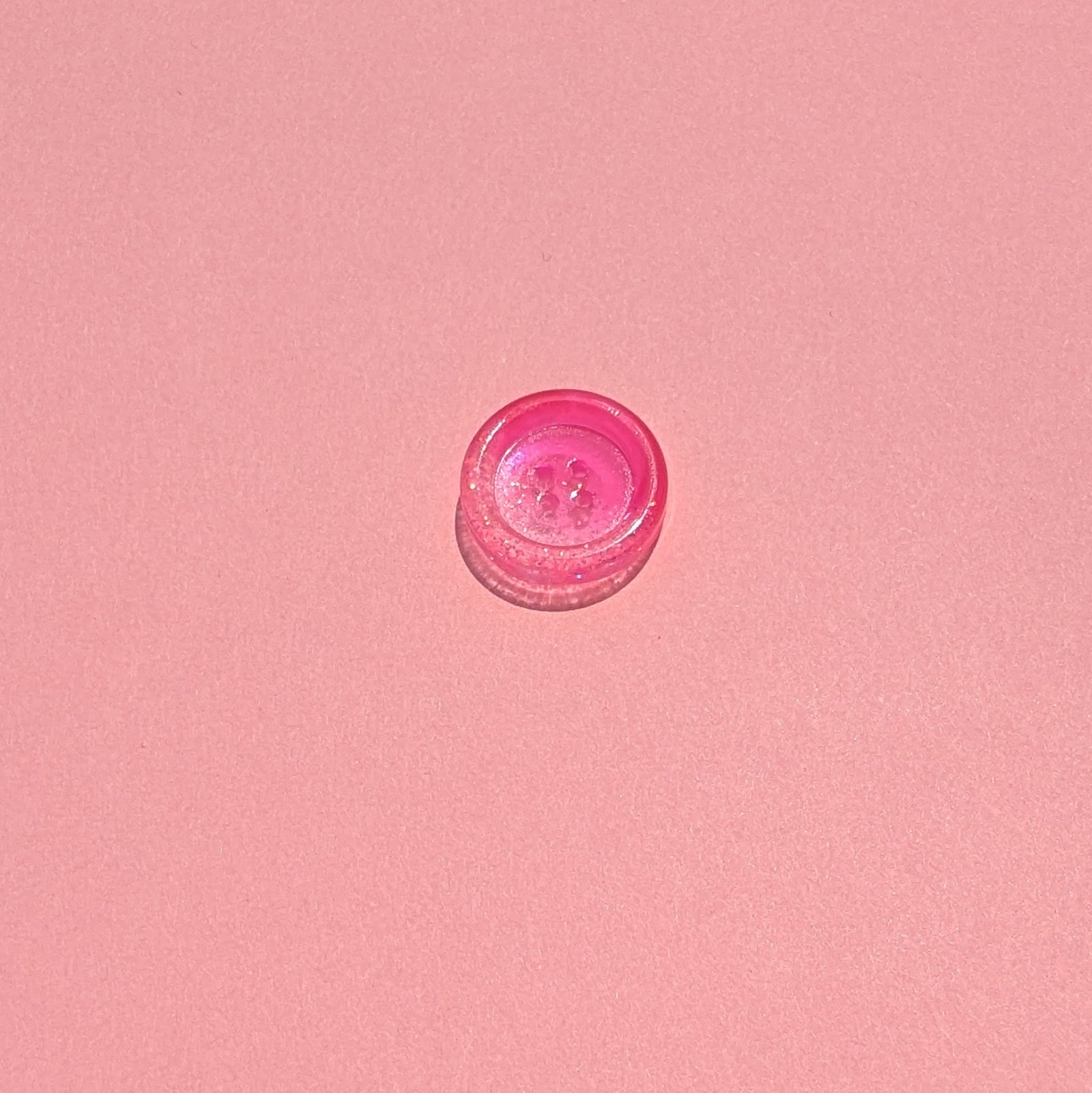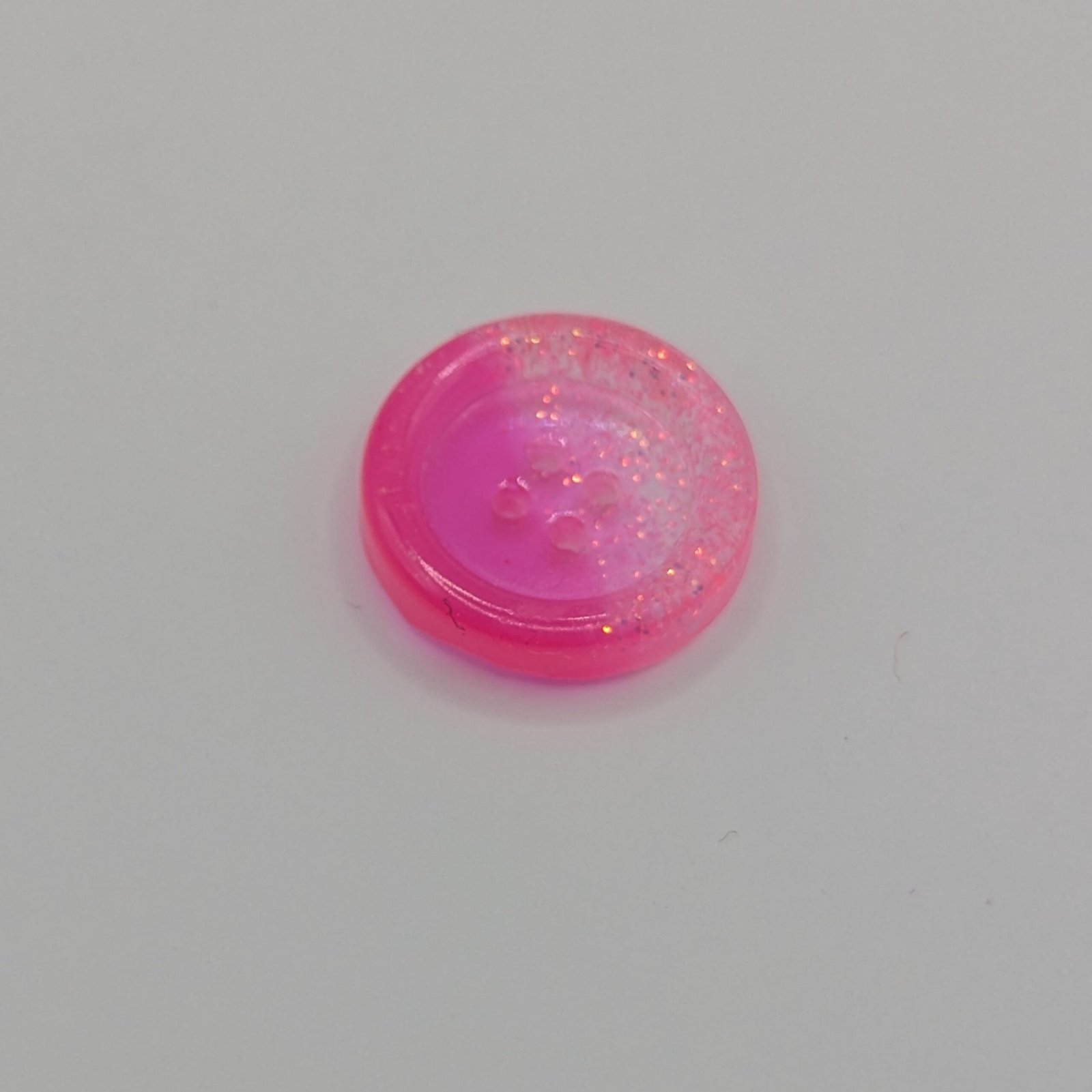 Der  Knopf „Palina“ ist ein Knopf aus Epoxidharz, in einem Neon Pink/neon Pinken Holografischen Glitzer und hat einen Durchmesser von 15mm.