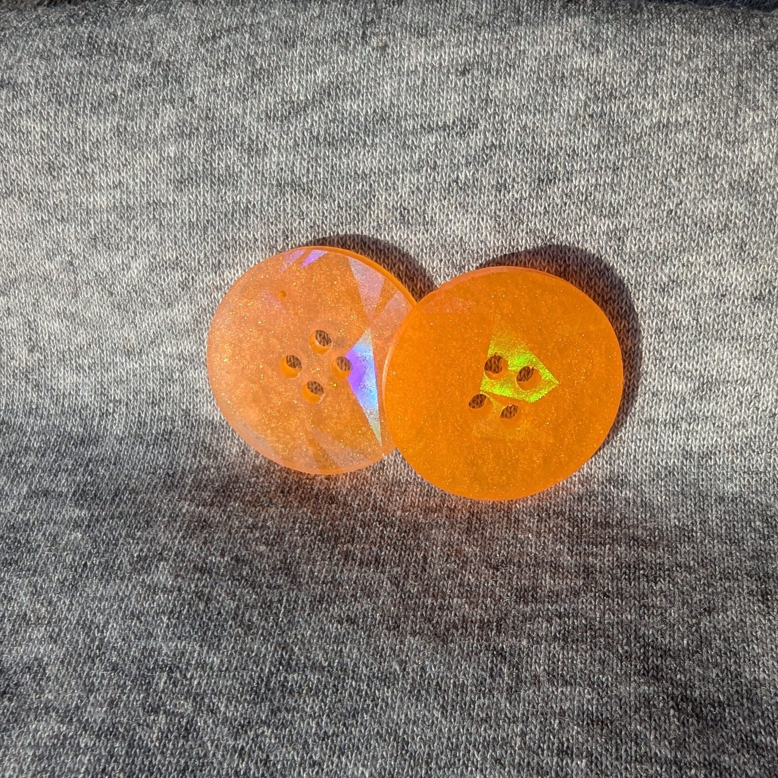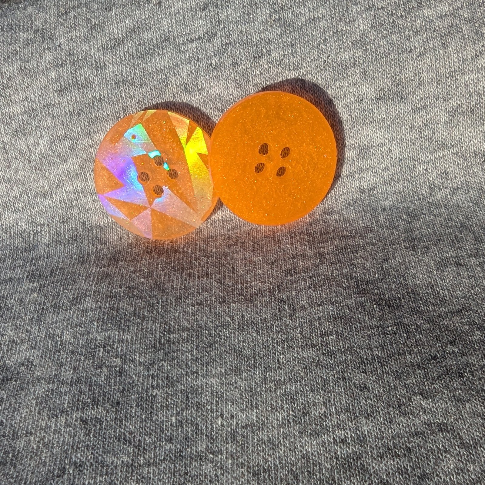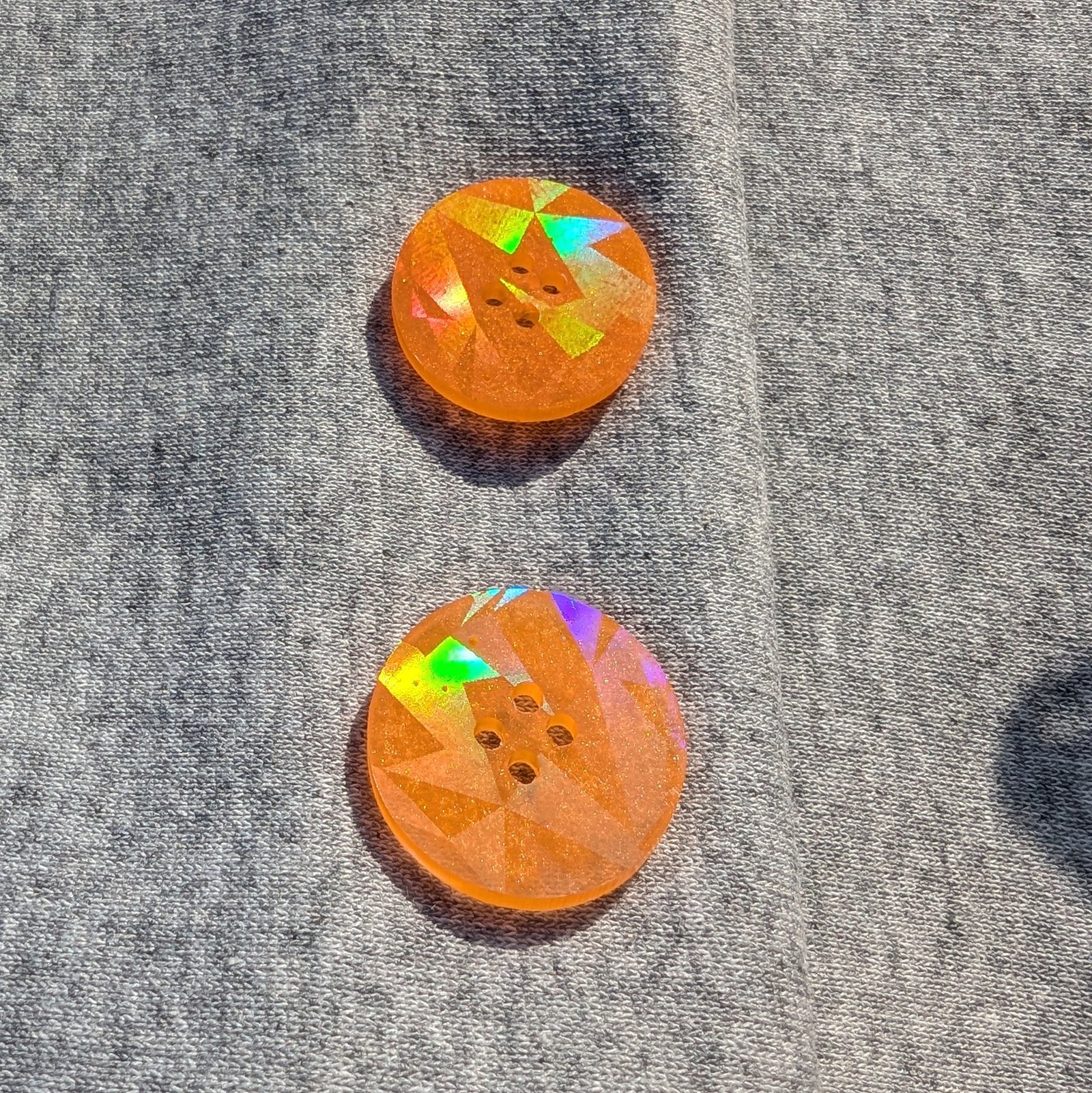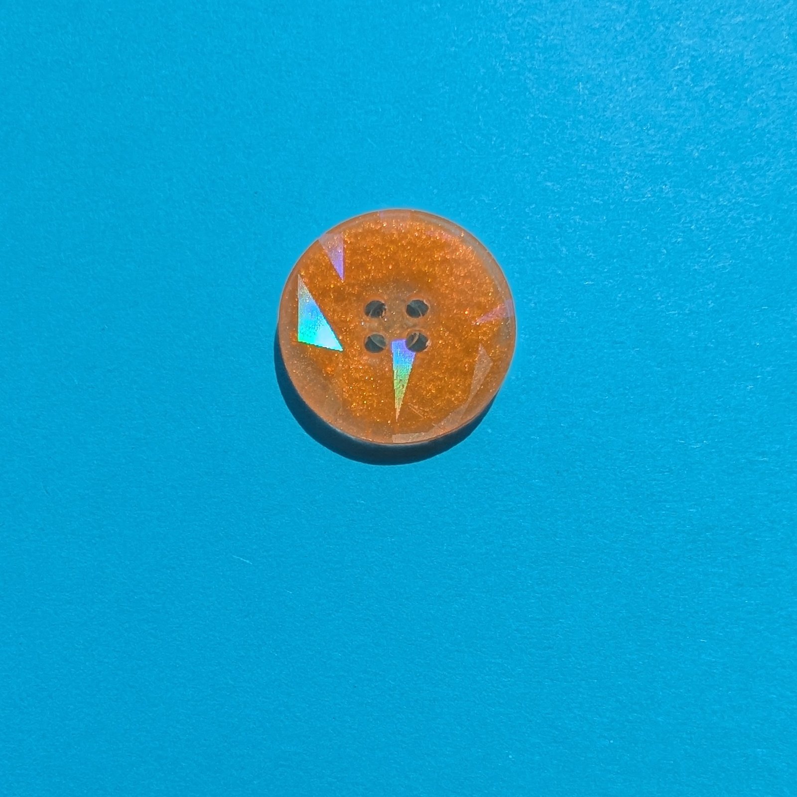 Der Knopf „Oana“ in einem leuchtendem Orange ist das perfekte Accessoire für alle Bastel- und DIY-Projekte. Mit seiner einzigartigen holografischen Oberfläche reflektiert er das Licht auf spektakuläre Weise und zaubert einen schillernden Effekt, der jedes Produkt aufwertet. Egal, ob du Kleidung, Taschen oder andere DIY Projekte gestaltest, dieser auffällige Knopf wird garantiert zum Hingucker. Perfekt für Modebegeisterte und Kreative, die ihren Projekten einen besonderen Glanz verleihen möchten.